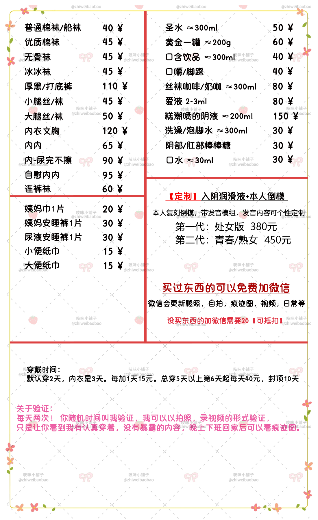 买过任意一个东西的 加微信不要钱, 微信会更新日常,腿照,痕迹图,制作视频等....